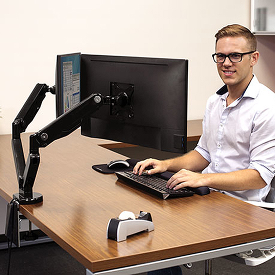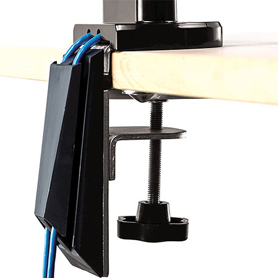 - Chaque bras supporte un écran pesant jusqu’à 9 kg ou 27” et répond aux normes de fixation VESA