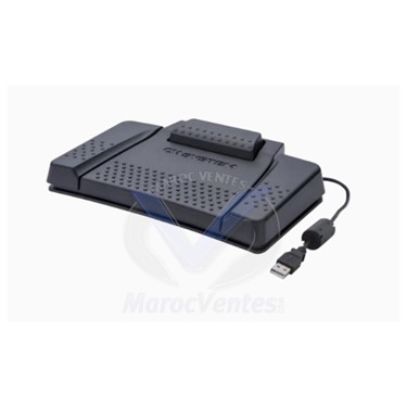 RS31N USB Foot Switch with 4 pedals. Le RS31N est une pédale de commande USB conçue pour les professionnels de la transcription à la recherche d'un contrôle mains libres. Elle comporte quatre pédales aux fonctions configurables, dont le mode clavier HID, qui permet de personnaliser les raccourcis. La construction durable et le tapis antidérapant garantissent la stabilité pendant l'utilisation, tandis que le câble USB de 2,5 m offre une grande souplesse de positionnement.· Quatre pédales avec fonctions configurables· Prise en charge du mode clavier HID· Prise en charge des raccourcis clavier (par exemple, "Ctrl + Alt + P" ou "Alt + 1")· Prise en charge des touches multimédias· Compatibilité totale avec le logiciel ODMS 8· Tapis antidérapant pour le maintenir en place· Câble USB extrêmement durable et long (2,5 m)· Conception ergonomique pour une utilisation confortable· Compatible avec les principales applications tierces· Contrôle facile du logiciel de transcription (lecture, arrêt, retour en arrière, etc.).CONTENU DE LA BOITE
