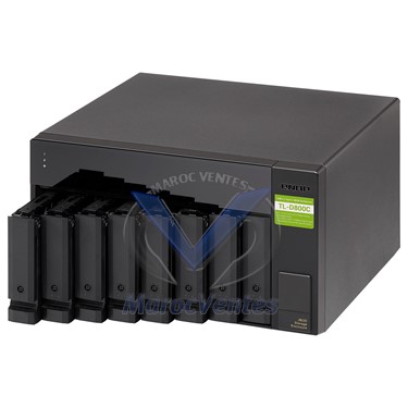 Le boîtier de stockage JBOD TL-D800C vous permet de sauvegarder et d’étendre votre NAS QNAP. Le TL-D800C comprend huit baies de lecteur 3,5 pouces SATA 6 Gbit/s avec une connectivité USB 3.2 Gen2 Type C (10 Gbit/s) pour fournir une solution d’extension rapide et fluide.TL-D800C : Boitier de stockage aux multiples possibilitésLe TL-D800C proposé par QNAP est un boitier RAID pour 8 disques durs ou SSD 2.5"/3.5" qui propose plusieurs modes de fonctionnement. Il peut en effet être utilisé comme unité d'expansion en étant branché à un NAS pour étendre la capacité de stockage ou directement sur un PC (Windows / Ubuntu) pour une utilisation comme boitier externe USB 3.1.Grâce à ses 8 baies, le QNAP TL-D800C permet de mettre en place une solution de stockage et de sauvegarde de votre PC (Windows / Ubuntu) ou de votre NAS facilement et rapidement grâce à une configuration du RAID simplifiée avec le logiciel QNAP JBOD Manager performant et intuitif.Plusieurs possibilités d'utilisation