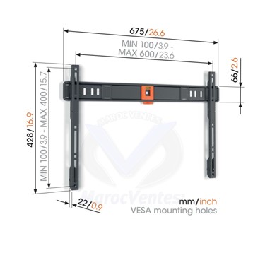 Schéma de trous (VESA)    100 mm x 100 mm, 100 mm x 200 mm, 200 mm x 100 mm, 200 mm x 200 mm, 200 mm x 300 mm, 300 mm x 200 mm, 300 mm x 300 mm, 400 mm x 200 mm, 400 mm x 300 mm, 400 mm x 400 mm, 500 mm x 200 mm, 500 mm x 300 mm, 500 mm x 400 mm, 600 mm x 200 mm, 600 mm x 300 mm, 600 mm x 400 mm