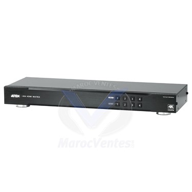 Une solution professionnelle pour un large éventail de situations:Le Commutateur matriciel HDMI 4K 4x4 Aten VM0404HA est conçu pour les applications nécessitant le routage de 4 sources vers 4 périphériques d'affichage compatibles. Il permet une transmission fiable à des résolutions vidéo allant jusqu'à la 4K UHD (3840 x 2160) et DCI (4096 x 2160).COMMUTATEUR MATRICIEL 4K 4X4Le commutateur matriciel HDMI 4K 4x4 ATEN VM0404HA prend en charge des résolutions 4K de UHD (3840 x 2160) et DCI (4096 x 2160) avec des fréquence d'actualisation de 30 Hz (4:4:4) et 60 Hz (4:2:0). Prêt pour l'avenir de la commutation vidéo haute définition, le VM0404HA est idéal pour les applications où le routage des signaux numériques 4K est nécessaire, comme dans les salles de classe, auditoriums, grands magasins et plus.Le commutateur matriciel VM0404HA offre un moyen facile et abordable pour acheminer une des 4 sources vidéo HDMI à un des 4 écrans HDMI et peut être géré via les boutons-poussoirs du panneau avant, la télécommande IR et le contrôle RS-232, assurant un affichage et un contrôle optimaux de la vidéo haute définitionCaractéristiques