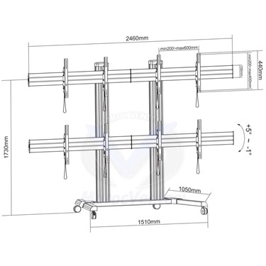VESA max pris en charge : 600x400 mm; Inclinaison des étriers : -1° / +5°; Dimensions de base : 1510x1050 mm; Couleur : argen